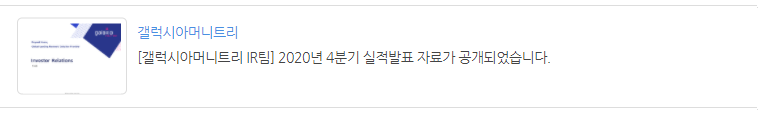 [갤럭시아머니트리 IR팀] 2020년 4분기 실적발표 자료가 공개되었습니다.