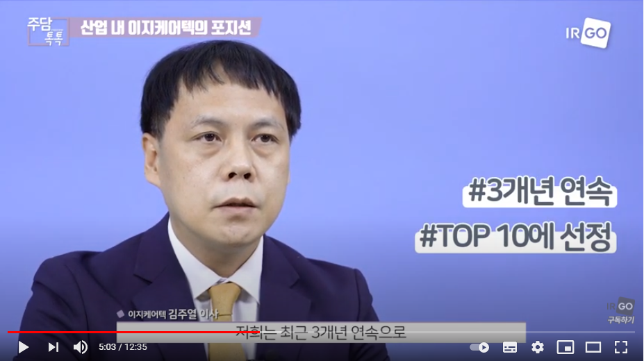 이지케어텍 김주열 이사님의 인터뷰 영상입니다.