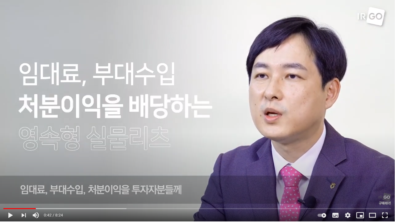 개별자산에서 발생하는 임대료, 부대수입, 처분이익을 투자자분들께 배당하는 영속형 실물리츠입니다.