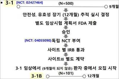 - 3-1 임상에서 (9개월이 되지 않은) 환자 중에서 모집 시작