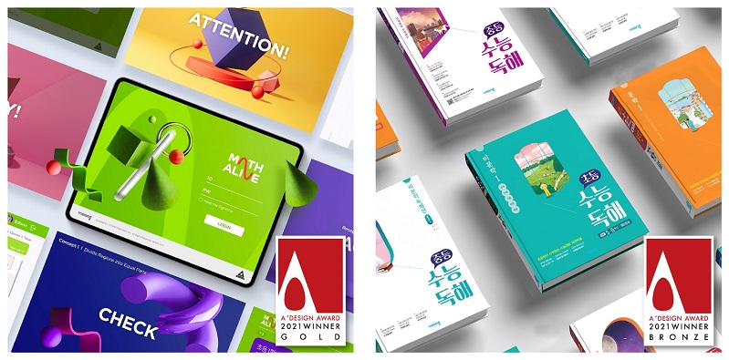 글로벌 교육 문화 기업 비상교육(코스피 100220, 대표 양태회)은 에듀테크 수학 브랜드와 독해 학습 브랜드 디자인이 올해 이탈리아의 ‘A 디자인 어워드’(A’ Design Award & Competition 2021)에서 골드·브론즈를 수상했다고 18일 밝혔다.
