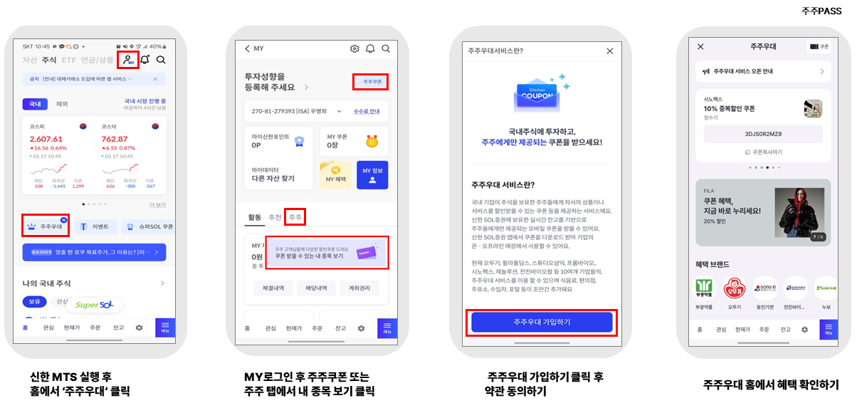 | 신한투자증권 | 2025-01-15 | * 홈에서 주주우대 메뉴 클릭 * 우측 상단 MY 로그인 후 주주 메뉴 클릭 |