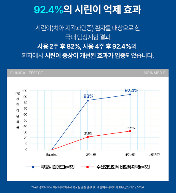4주 사용 시 더욱 높아지는 시린이 억제 효과 92.4%(경희대학교 치과대학 임상완료)