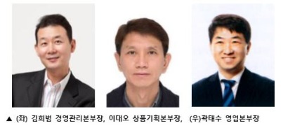 이에 따라 경영관리본부와 상품본부, 영업본부의 3본부 체제로 개편되며 경영관리본부는 김희범 상무가 CFO로서 경영관리 및 마케팅 업무 전반을 총괄한다. 또 상품본부에 신임 이대오 상무, 영업본부는 곽태수 이사가 새 수장을 맡아 각 본부를 전두지휘한다.