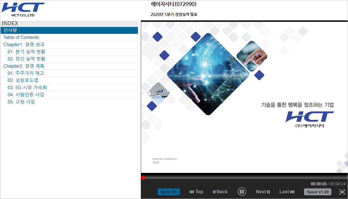 발표자 : 에이치시티 경영기획실 안인수 전무