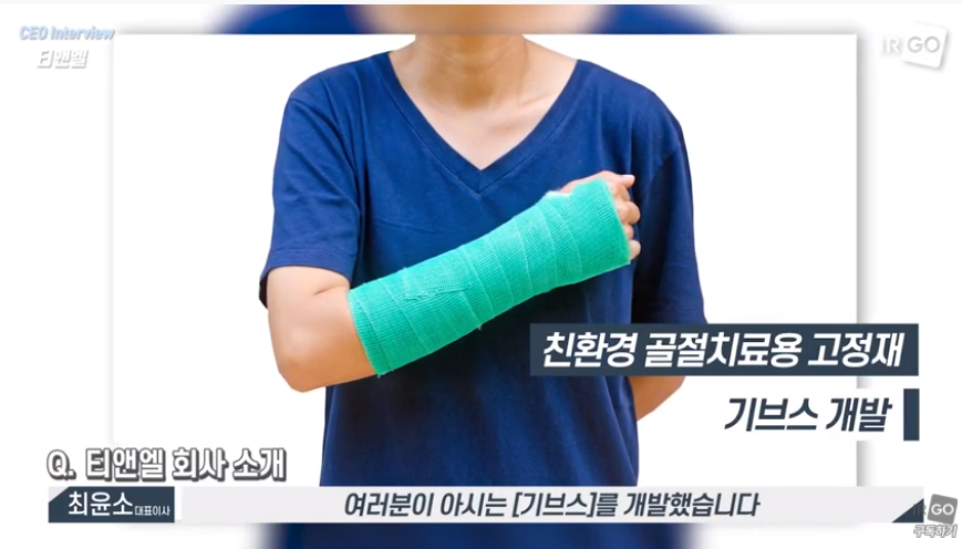 친환경 골절치료용 고정재(기브스)개발하였으며, 국내외 50여개 업체에 수출하고 있습니다.