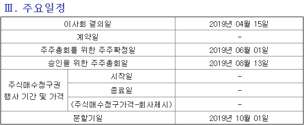 2019년 9월 19일 분할 관련 기업설명회(IR)개최)를 2019년 9월 19일 오후 4시 진행한다는 안내공시를 하였다.