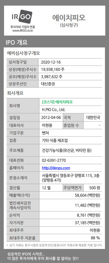 에이치피오 [IPO] 에이치피오 기업개요 - IRGO