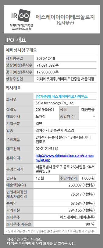 에스케이아이이테크놀로지 [IPO] 에스케이아이이테크놀로지 기업개요 - IRGO