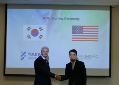 <2019-09-25> 과학기술 바이오 선도기업 영인프런티어(036180)가 미국 메릴랜드 소재 면역치료제 개발회사 이뮤노믹테라퓨틱스(Immunomic Therapeutics)사에 투자를 위한 양해각서를 체결했다고 25일 밝혔다.