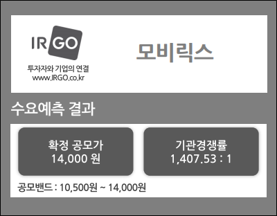 모비릭스 [IPO] 모비릭스 수요예측 결과안내 - IRGO